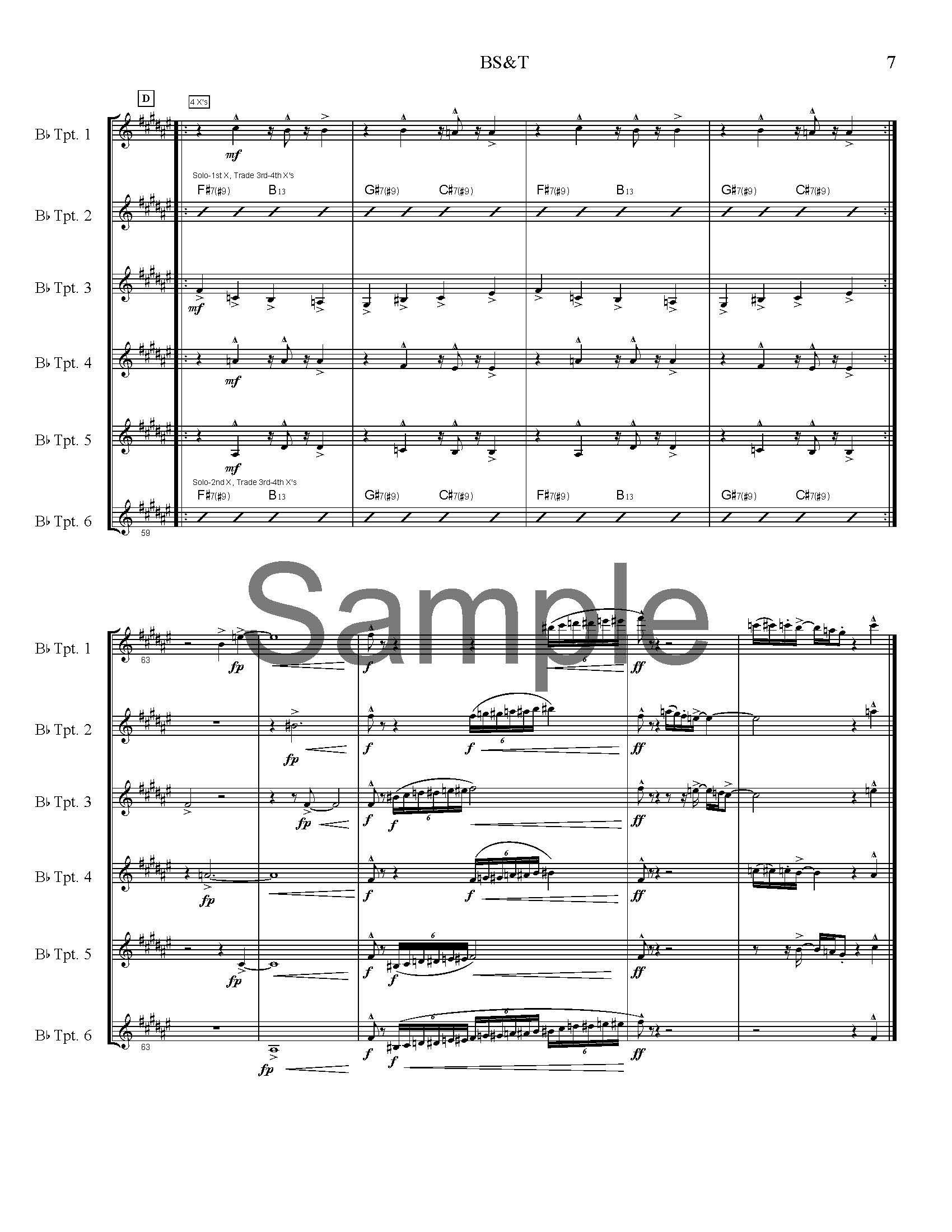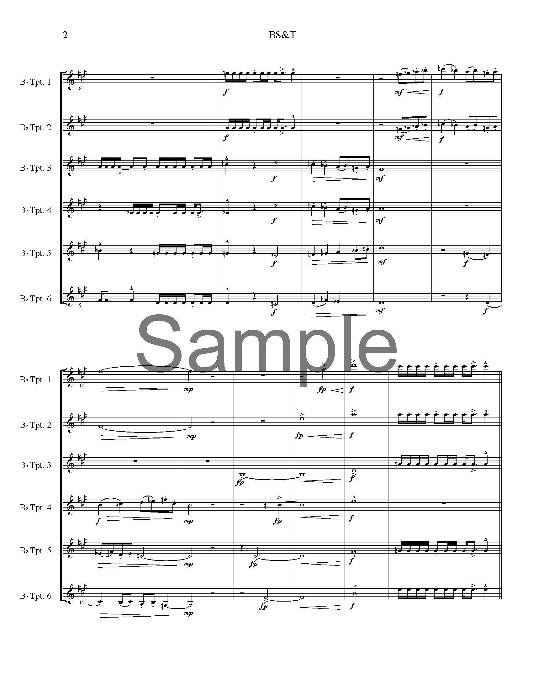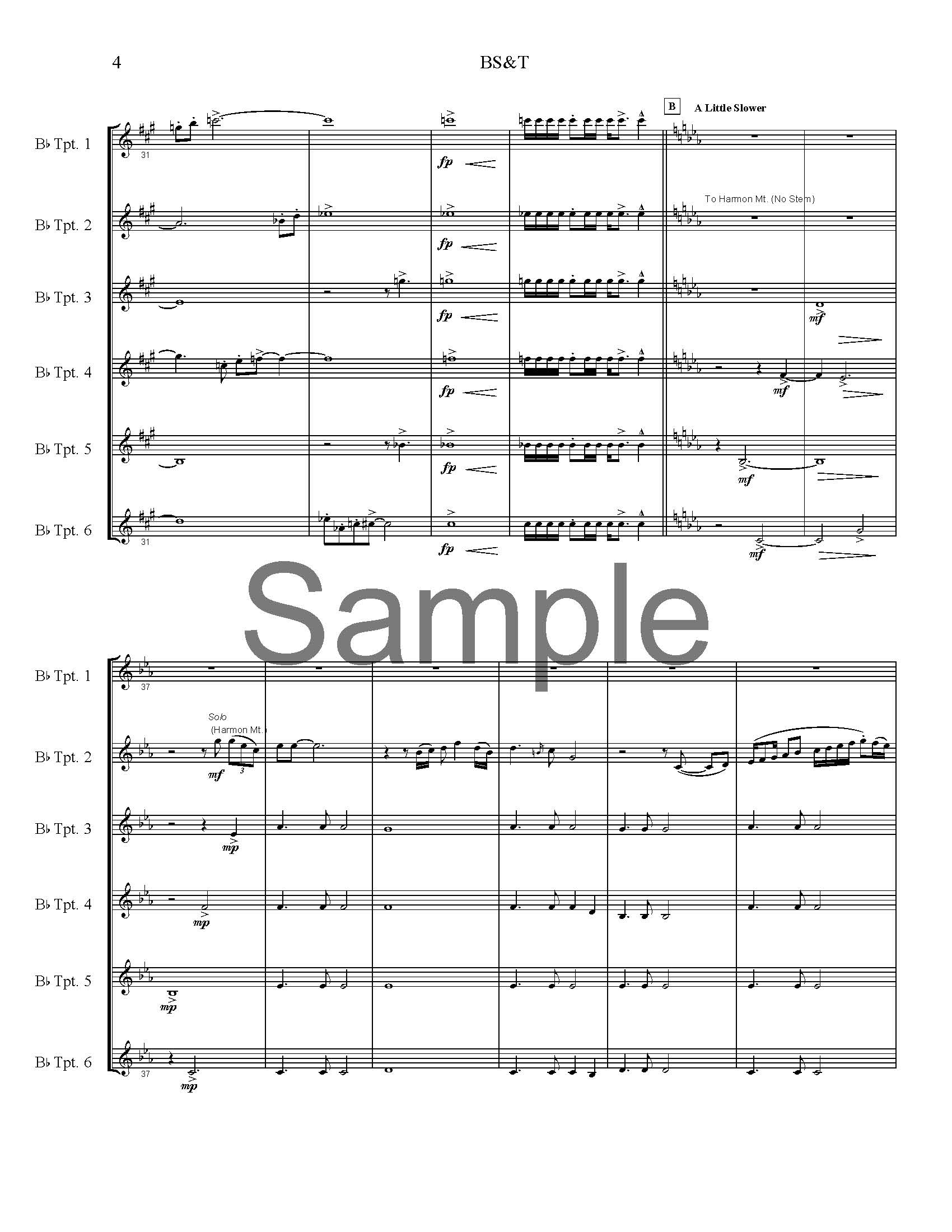 Composed in 2010, this 6-part trumpet ensemble is a dedication to one of my all time trumpet heroes, Lew Soloff. Lew was an incredible trumpet artist, perhaps best known for his work in the stellar jazz-rock band, Blood, Sweat and Tears. Those of us who grew up in that era (late 1960’s-mid 1970’s) knew every note Lew played on those recordings. His iconic solos on Spinning Wheel and Lucretia’s Reprise are hinted at here, hence the subtitle Borrowed Soloff and Trumpets (BS&T). This was performed at the annual Trumpet Festival of the Southeast at the University of Alabama, hosted by trumpet professor Dr. Eric Yates. Lew Soloff was our “jazz” artist that year. He seemed to be honored when I presented him a copy of the piece. Unfortunately he did not get to hear our performance of the piece. Â