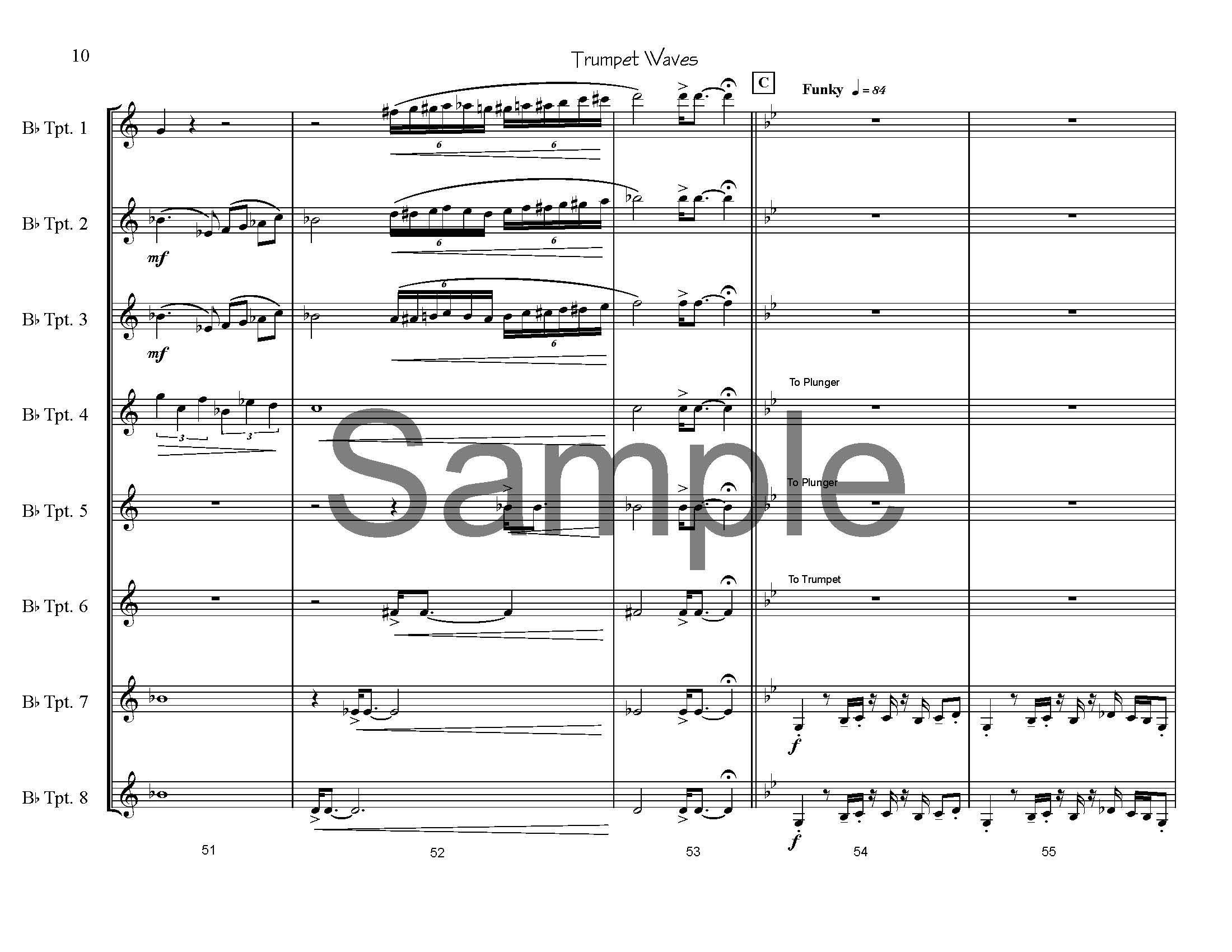 This six-and-a-half minute trumpet ensemble will keep your head spinning. Several groove, tempo shifts. Enough to challenge the best ensembles.